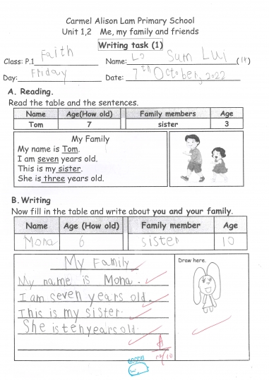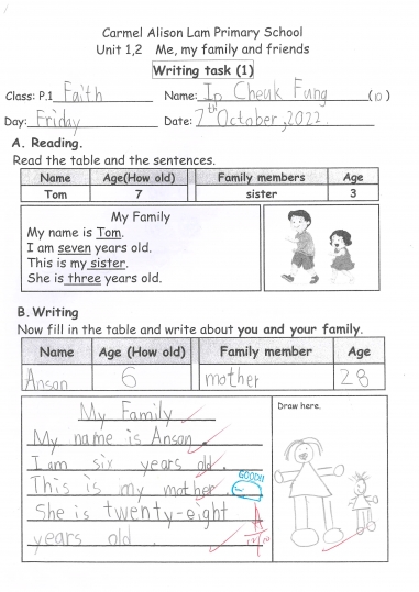 小一及小二家課