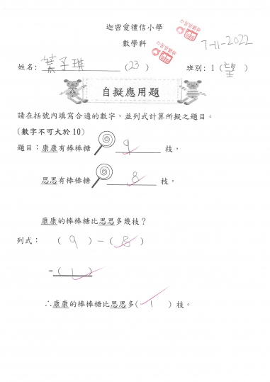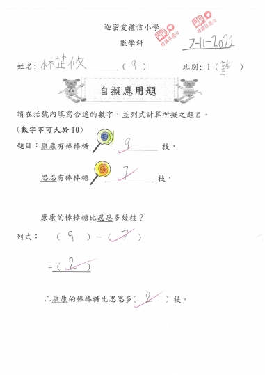1望 數學作品-自擬應用題(減法)