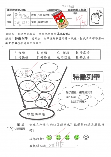 3愛 常識作品-高佳思維工作紙