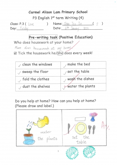 小一及小二家課