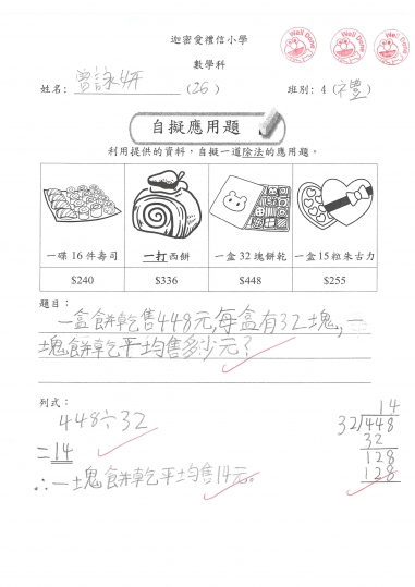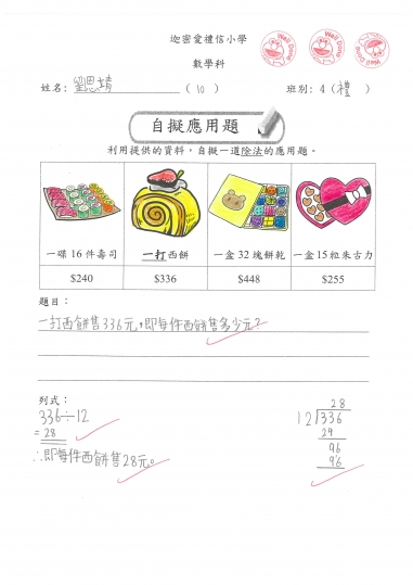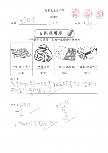 4禮 數學作品-自擬應用題