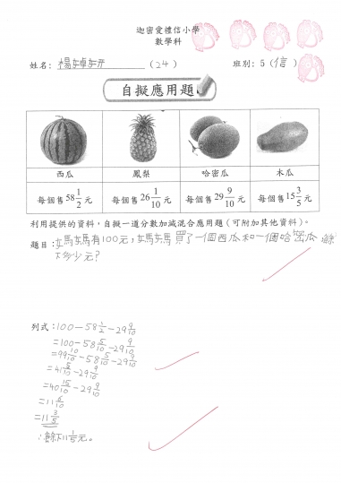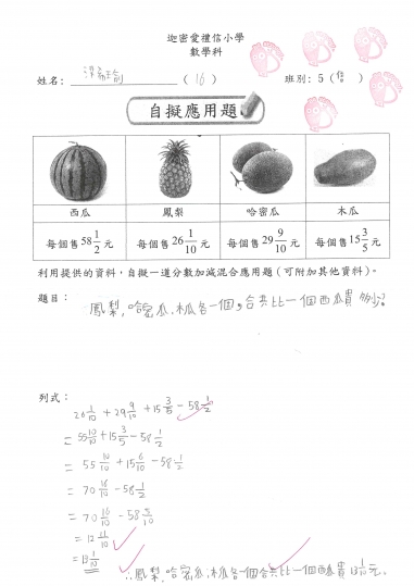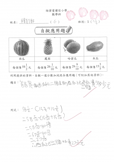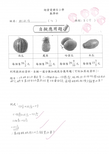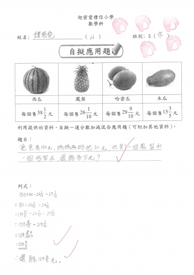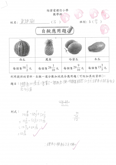 5信 數學作品-自擬應用題_分乘法