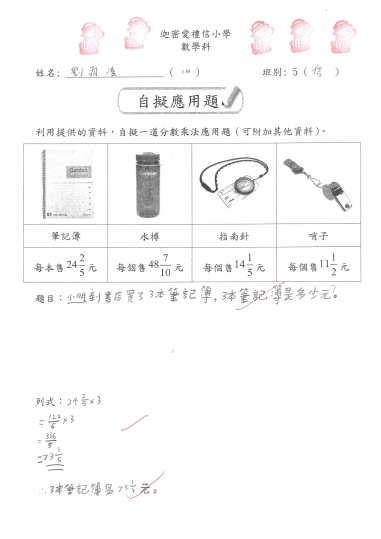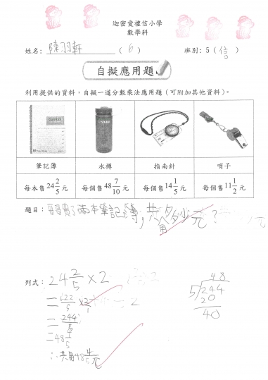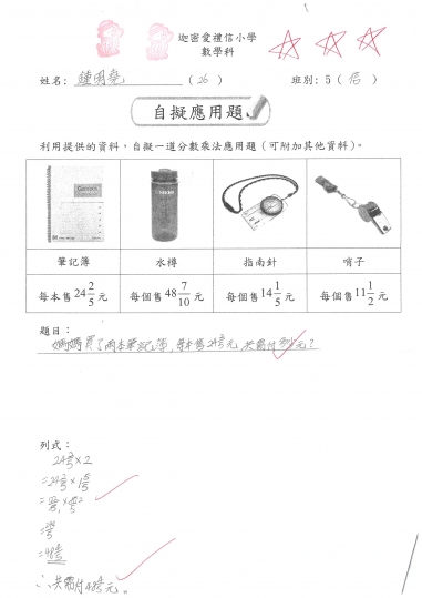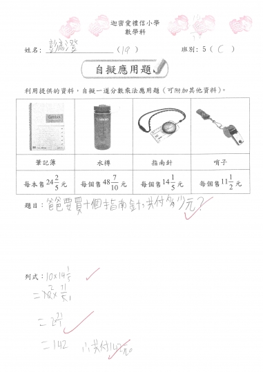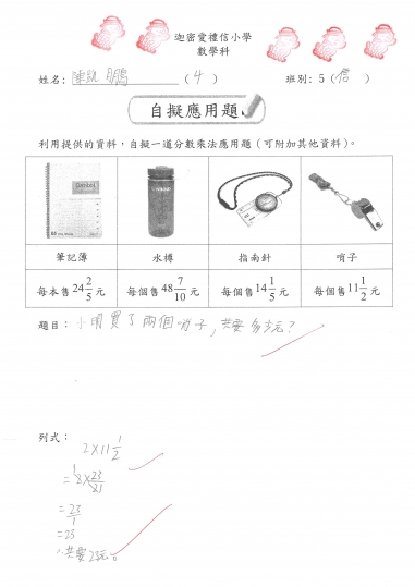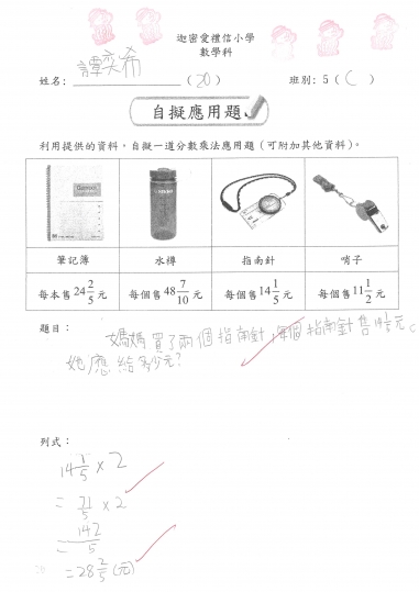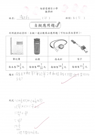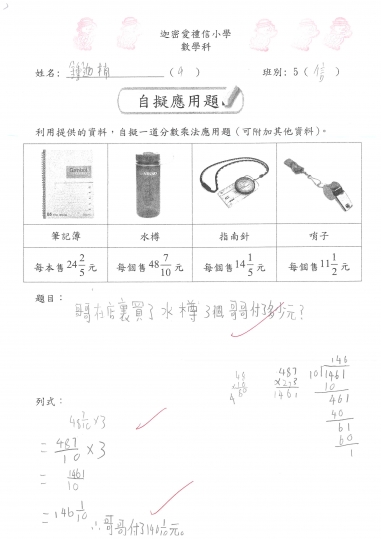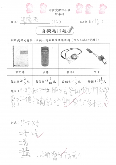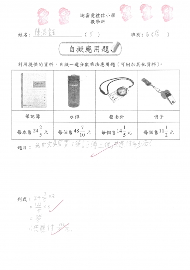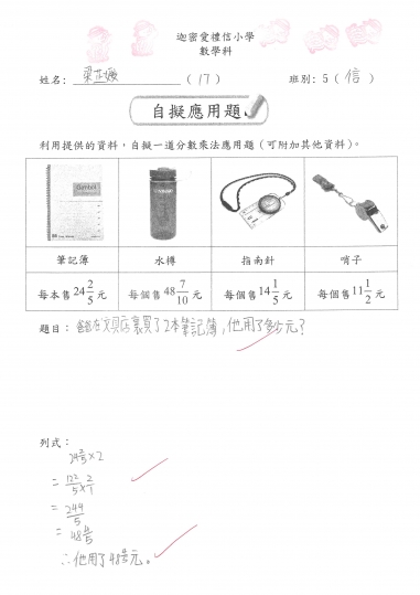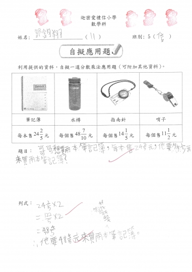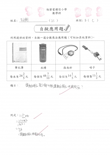 5信 數學作品-自擬應用題_分數加減混合
