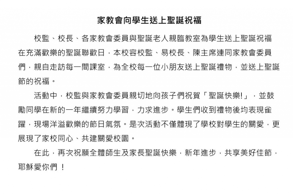 家教會向學生送上聖誕祝福