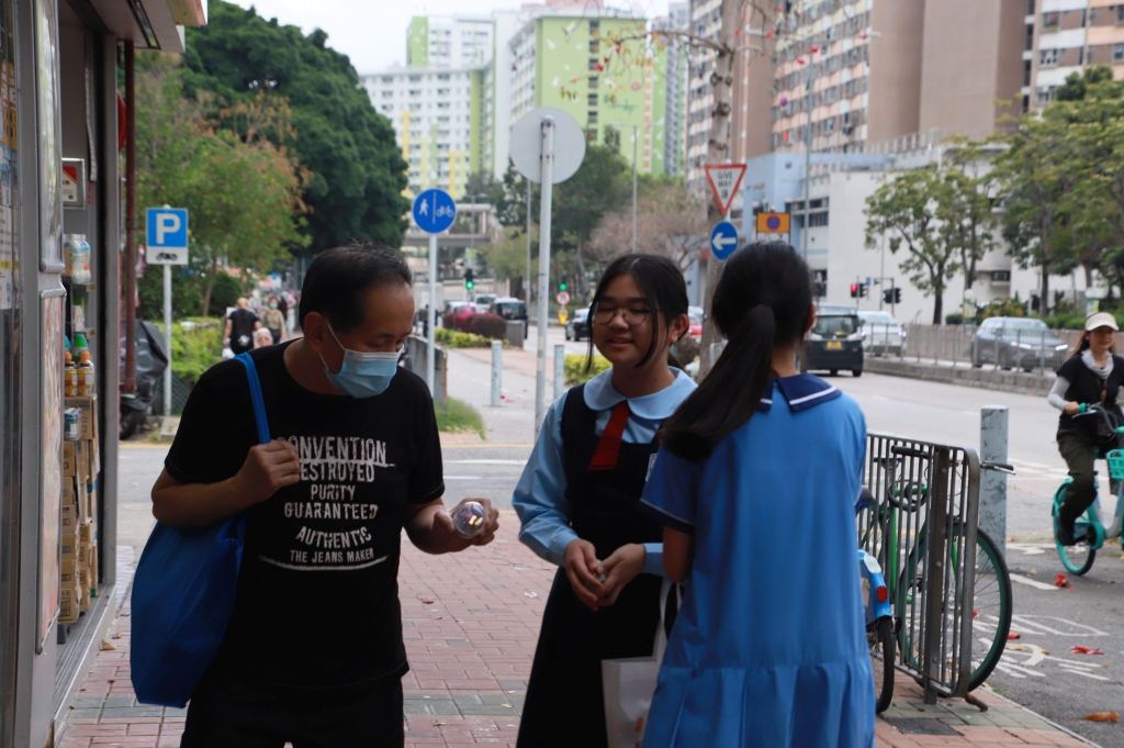 學生校園大使今天到隆亨邨進行第二天復活節社區祝福行動