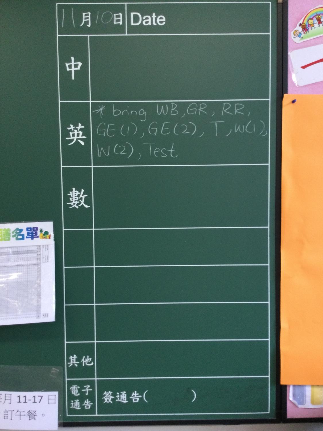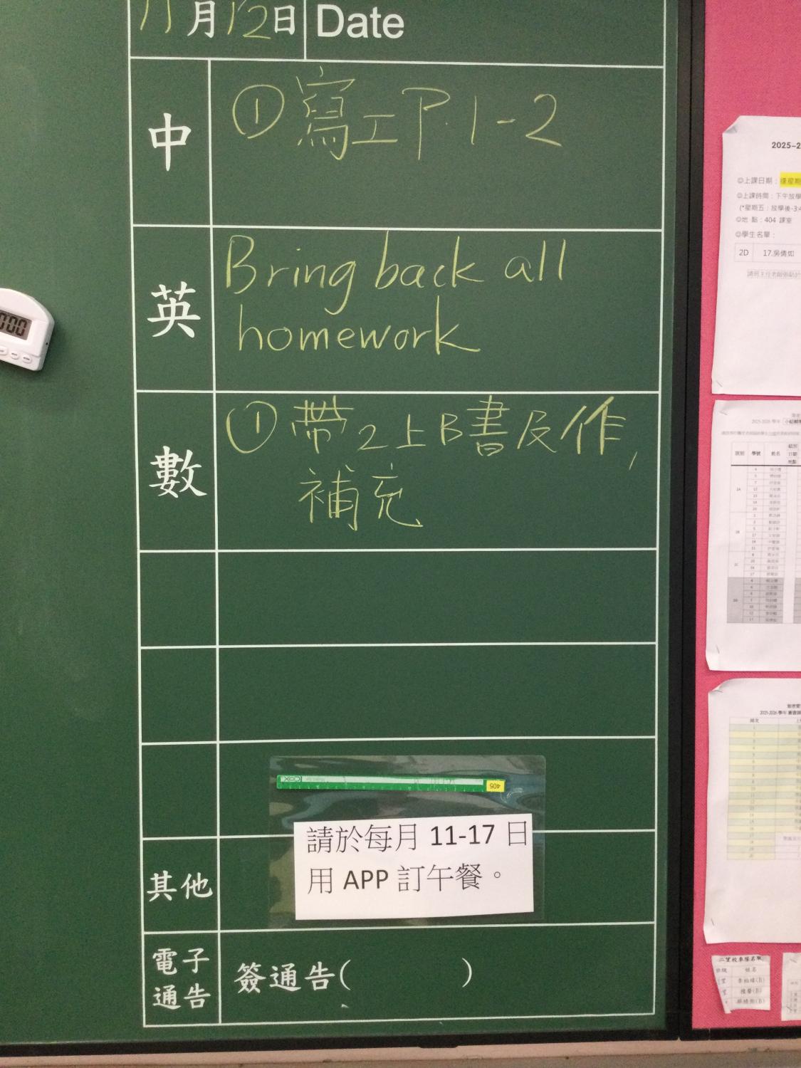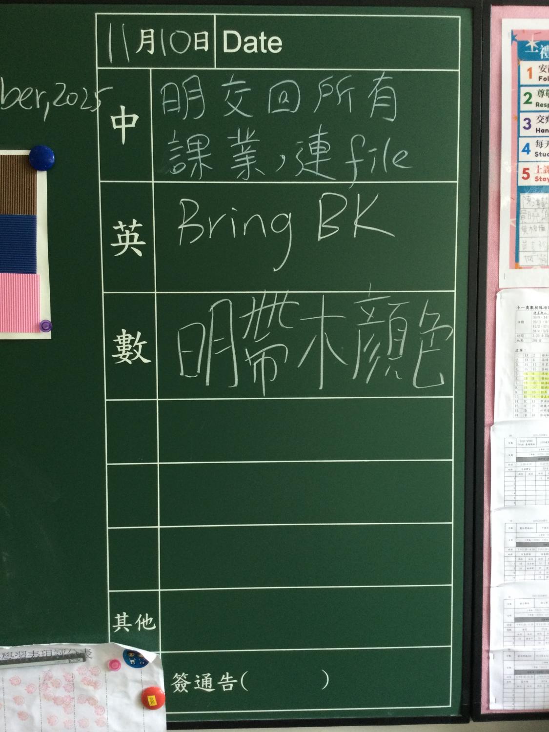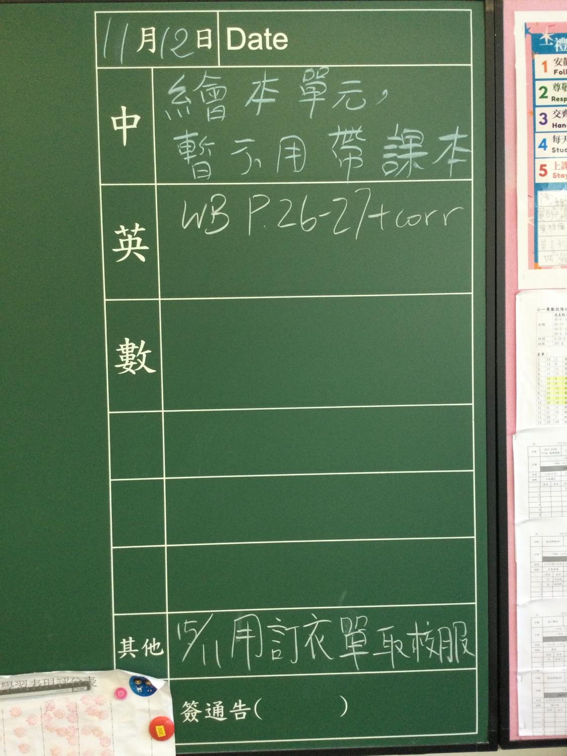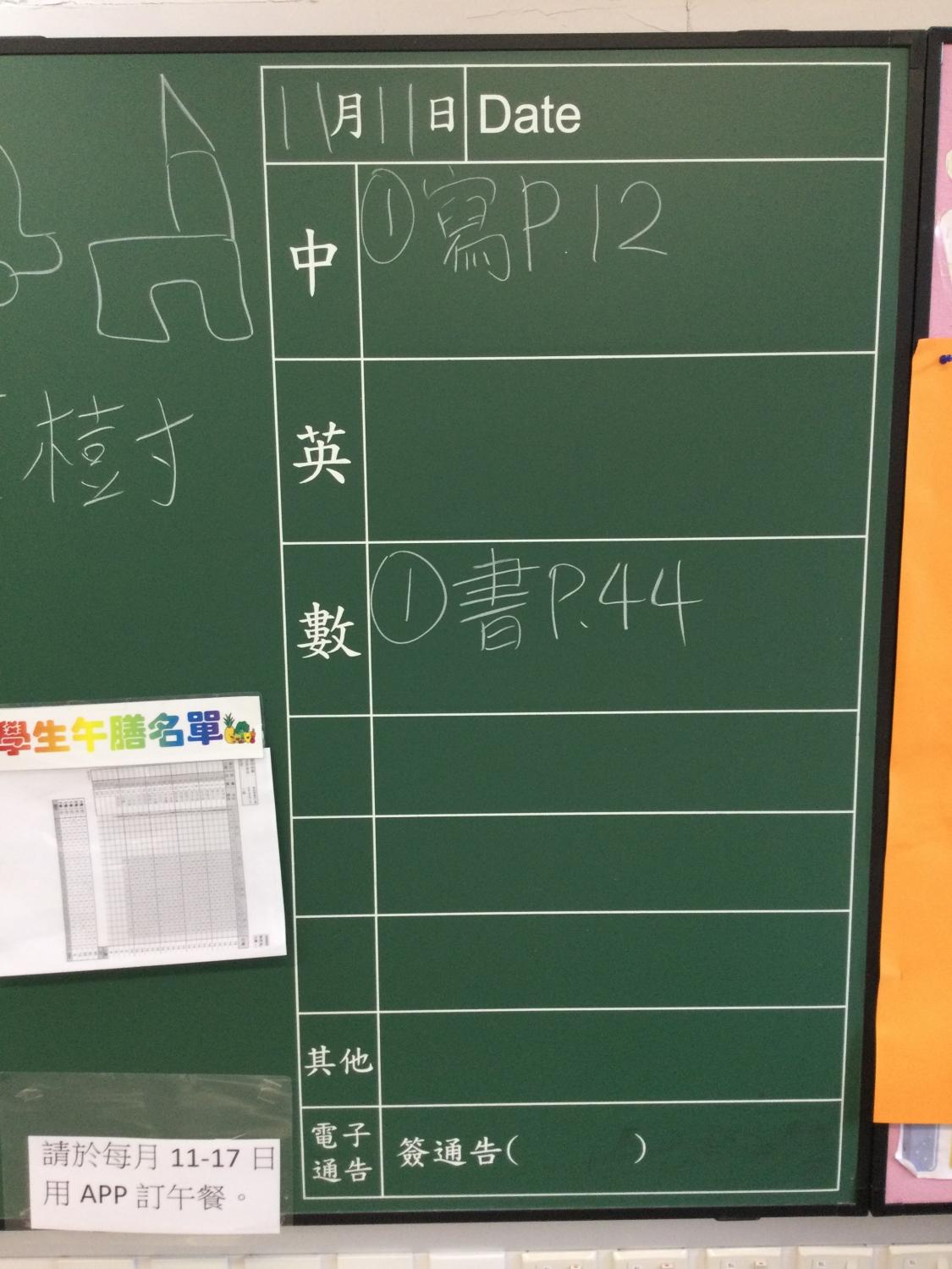 小一及小二家課