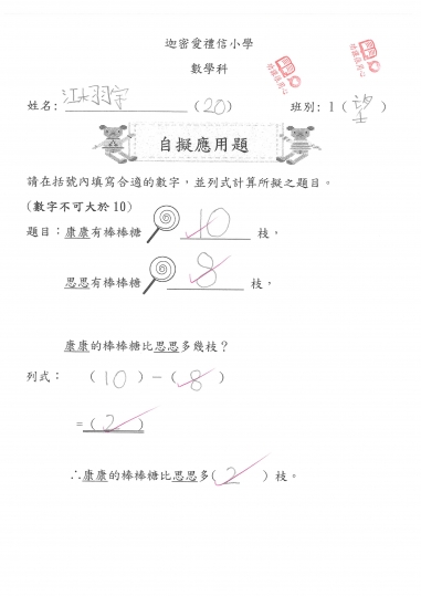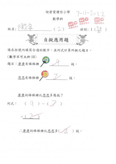 1望 數學作品-自擬應用題(減法)