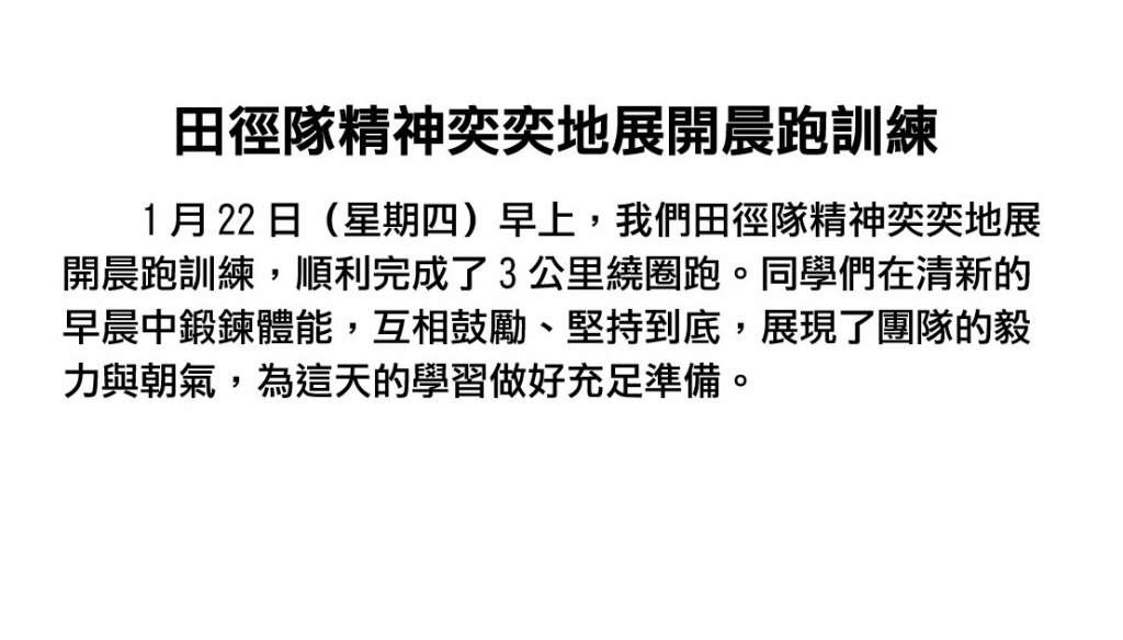 田徑隊日常:田徑隊精神奕奕地展開晨跑訓練