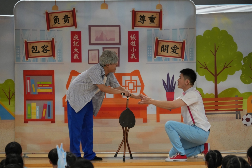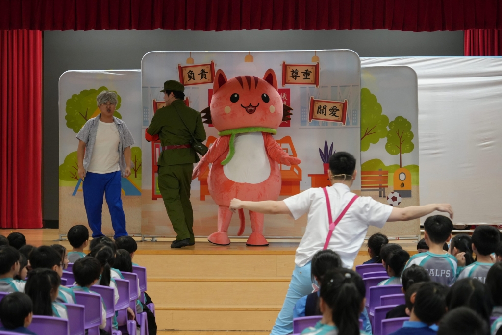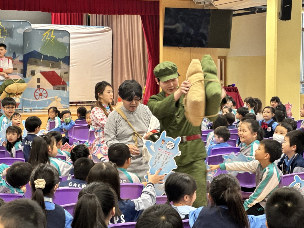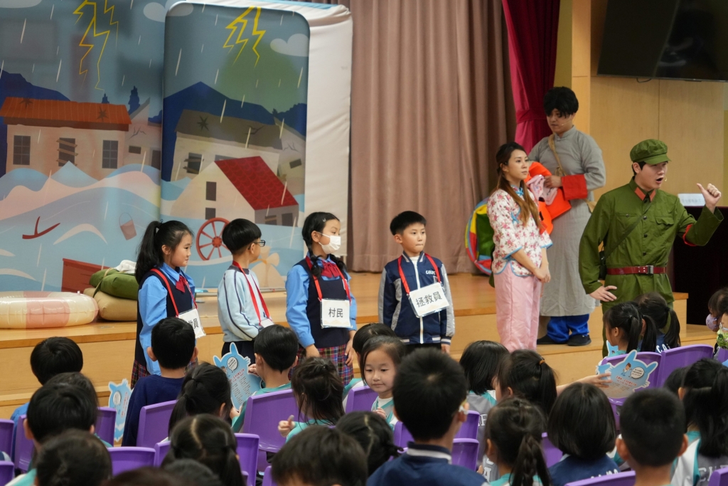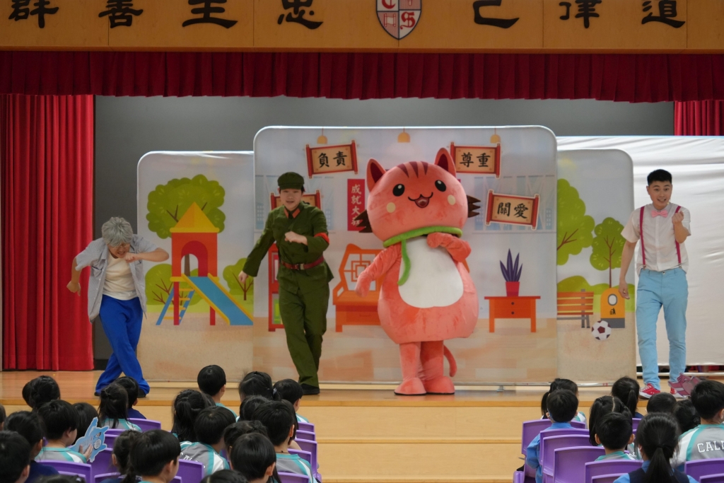 國安教育:《王子的重生之旅》互動劇場 本校小一至小三同學參與了由民政及青年事務局舉辦的學校巡迴演出《王子的重生之旅》互動劇場,是次演出以互動劇場形式進行,情節引人入勝,學生全程投入觀賞,並積極參與互動環節