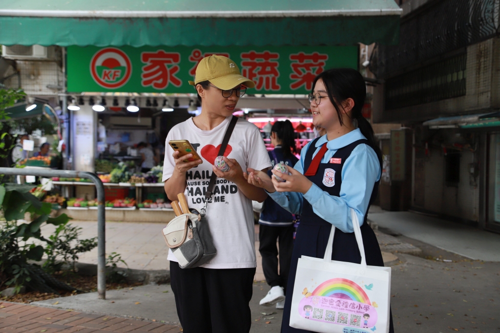 學生校園大使今天到隆亨邨進行第二天復活節社區祝福行動