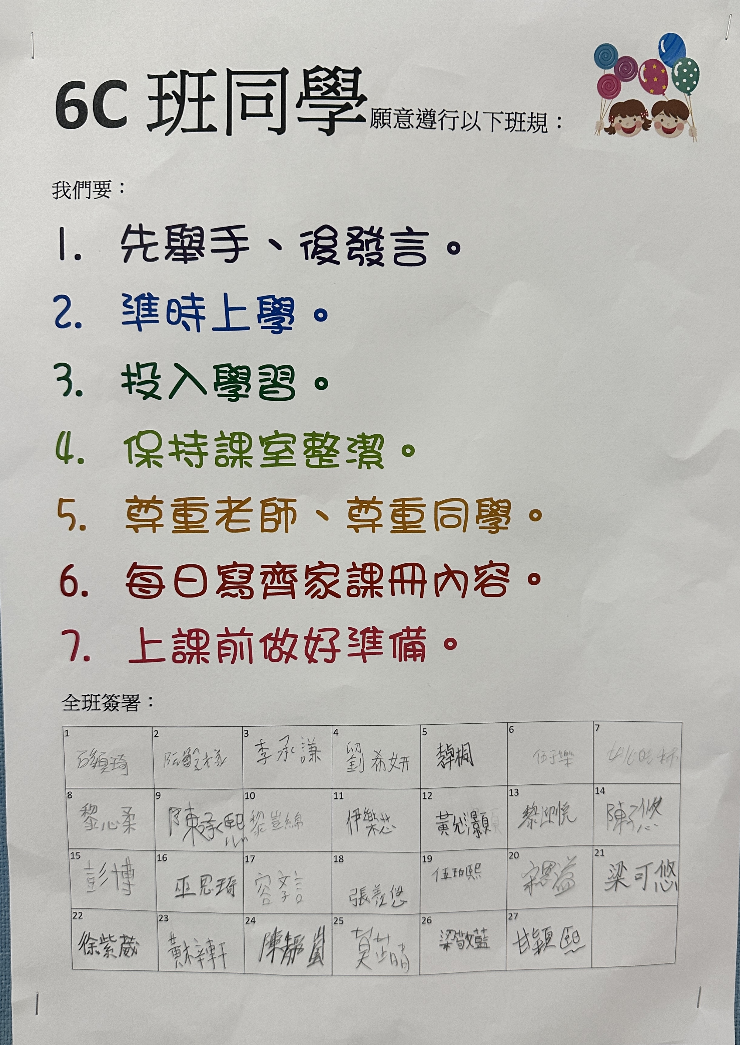 很高興認識你們!盼望我們於這一年一同努力,一同前行,共同在最後一年的小學生涯添上精彩的一頁。